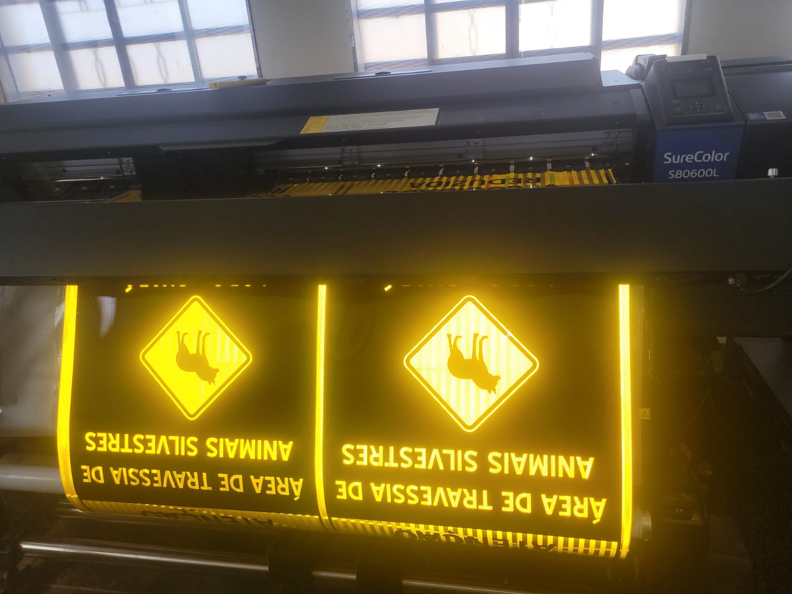 Utilizamos películas refletivas homologadas que garantem visibilidade noturna e longa vida útil, ideais para rodovias e vias urbanas.